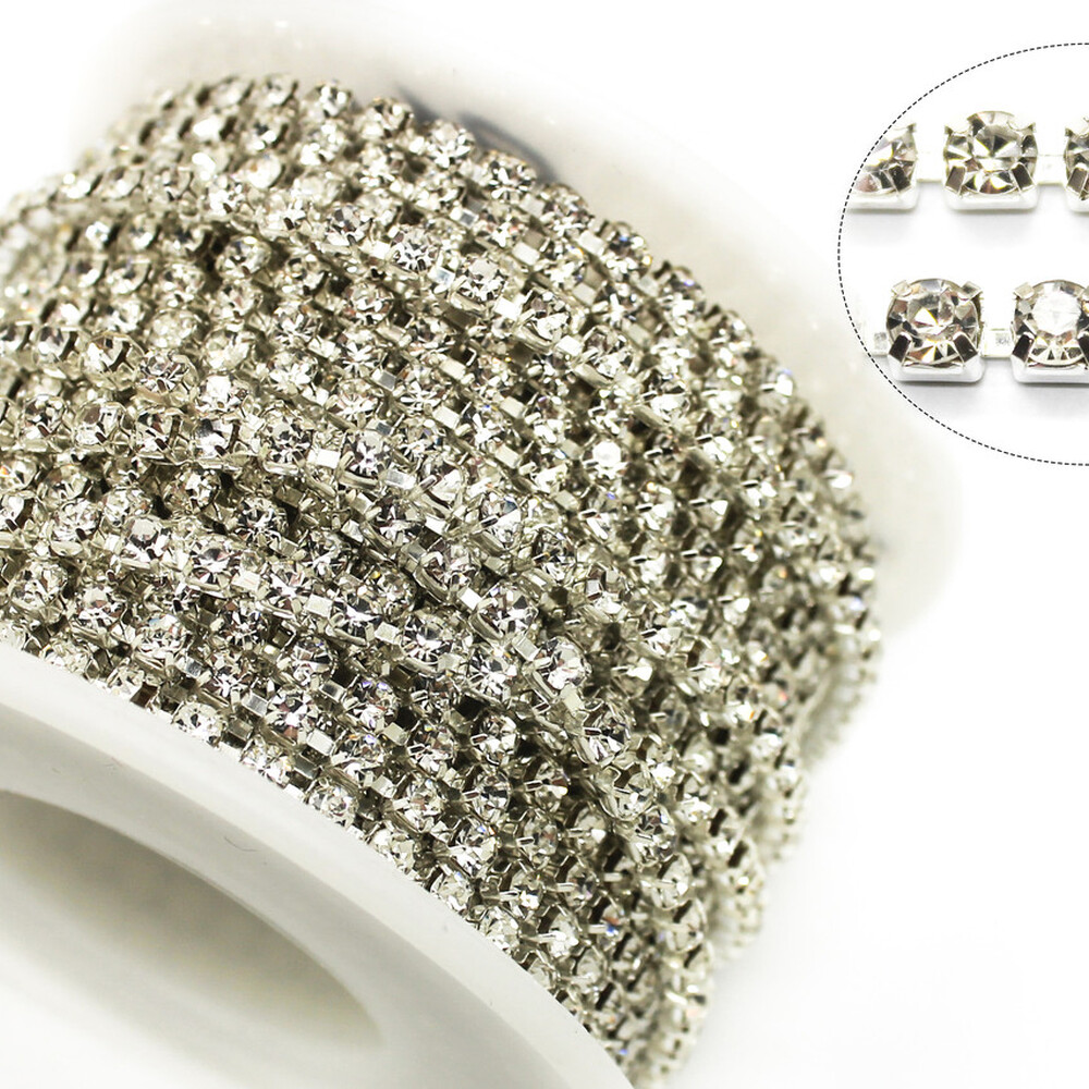 Стразовая цепь ss10 (2,8 мм) 1 м Crystal silver