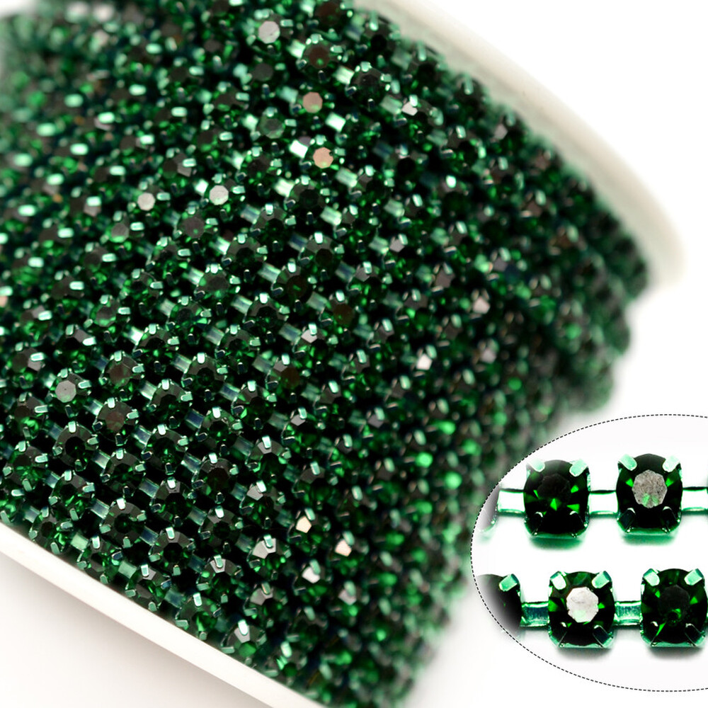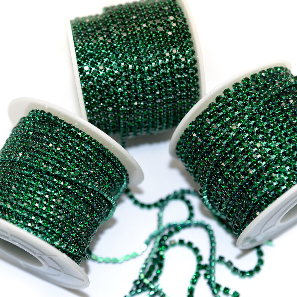 Стразовая цепь ss10 (2,8 мм) 1 м Emerald grean