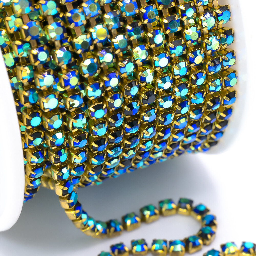 Стразовая цепь ss10 (2,8 мм) 1 м Jet AB gold