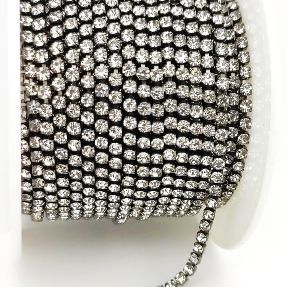 Стразовая цепочка — это изысканный декоративный элемент, широко применяемый в дизайне одежды, аксессуаров, декора и рукоделии. Цепочка состоит из высококачественных стеклянных стразов, надёжно закреплённых в металлических цапах, соединённых в элегантный ряд. Изделие выглядит роскошно и эффектно, привлекая внимание своим блеском и игрой света.