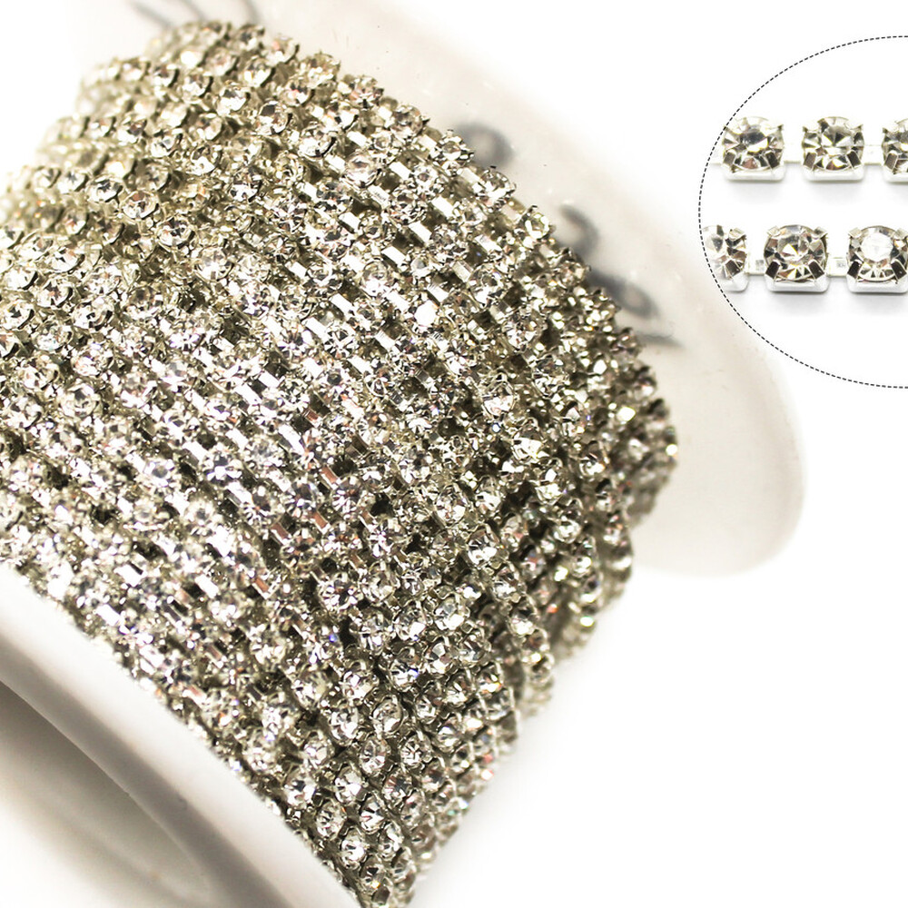 Стразовая цепочка — это изысканный декоративный элемент, широко применяемый в дизайне одежды, аксессуаров, декора и рукоделии. Цепочка состоит из высококачественных стеклянных стразов, надёжно закреплённых в металлических цапах, соединённых в элегантный ряд. Изделие выглядит роскошно и эффектно, привлекая внимание своим блеском и игрой света.