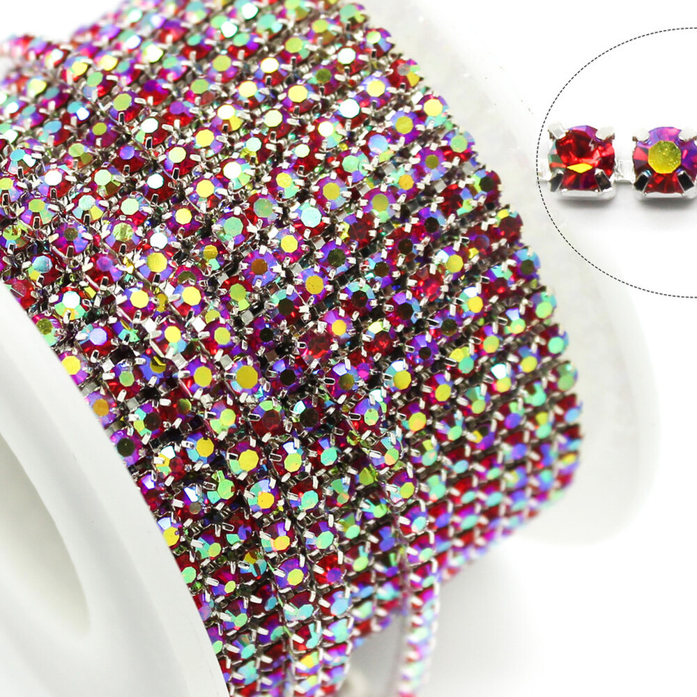Стразовая цепь ss6 (2 мм) 1 м Light siam AB silver