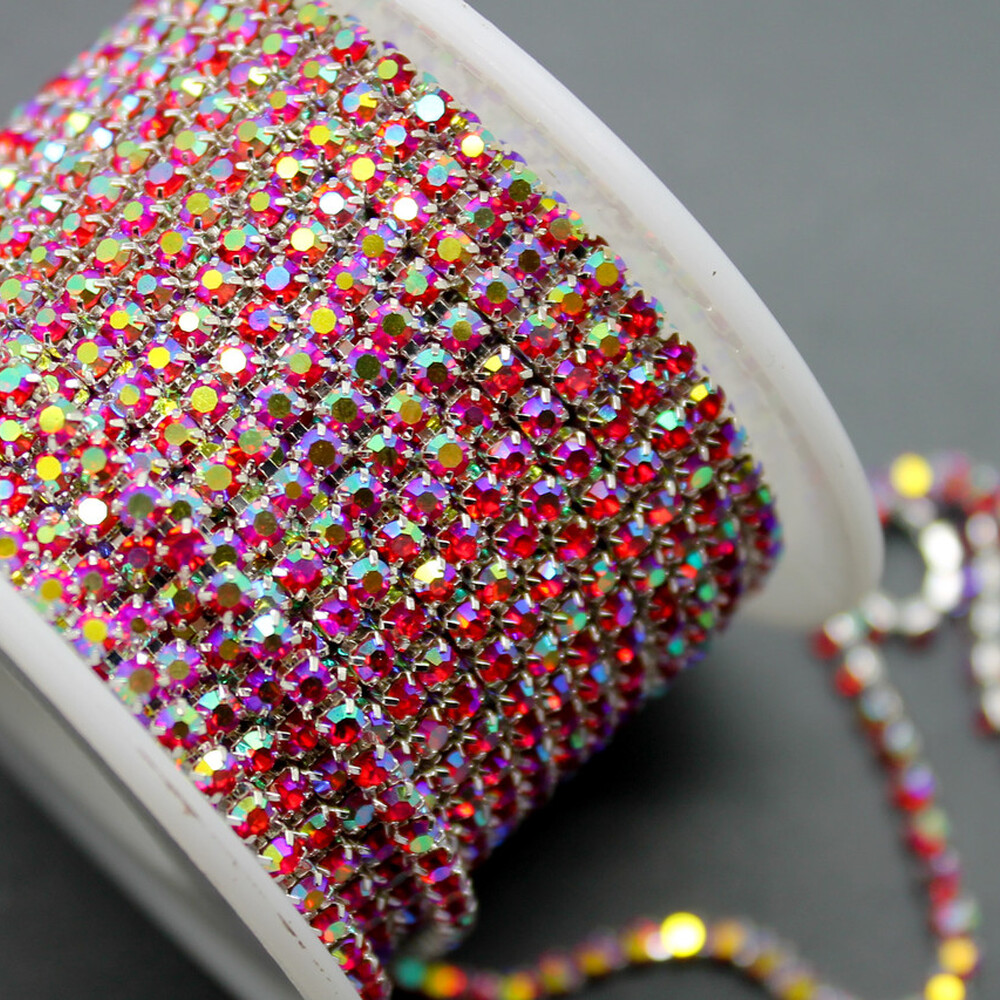 Длина цепочки — 1 метр (примерно 320 страз), что делает её удобной как для небольших, так и для масштабных проектов. Изделие доступно в различных цветах стразов, что позволяет подобрать вариант, идеально подходящий к определённому стилю или теме изделия.