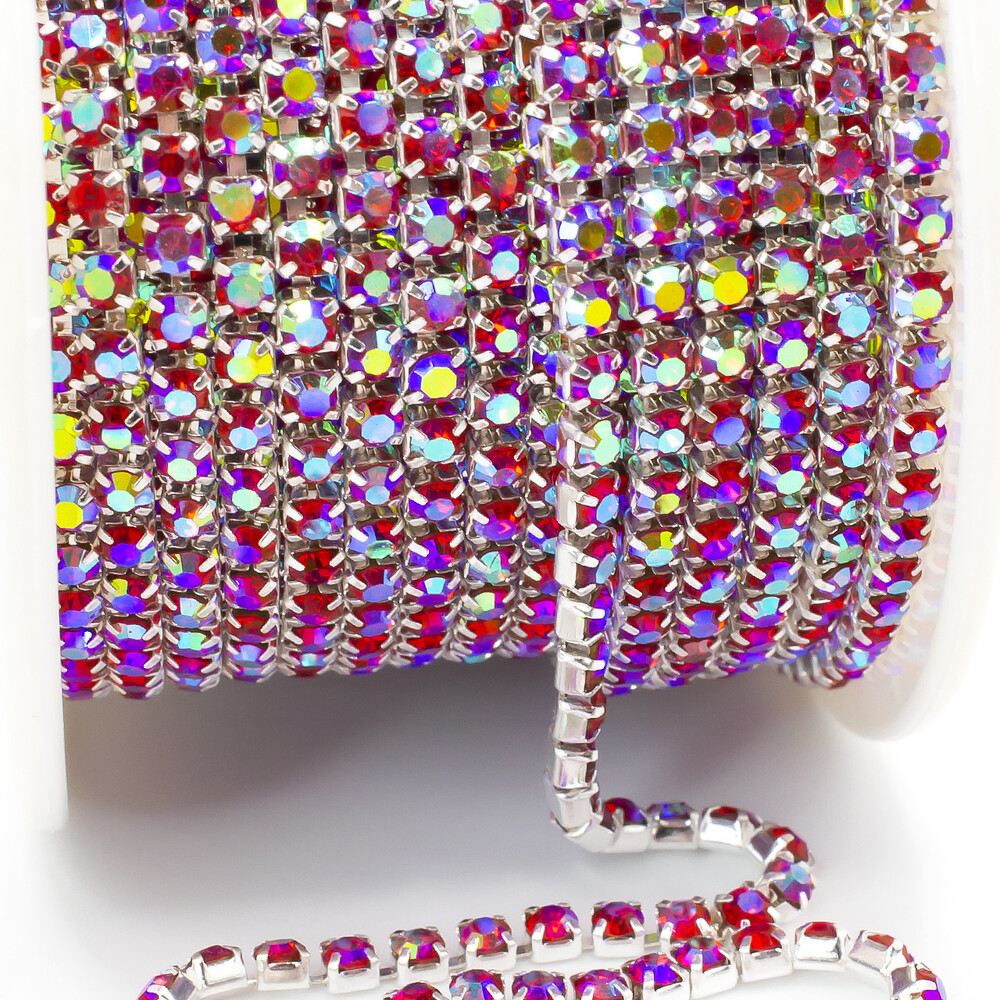 Стразовая цепь ss8 (2,5 мм) 1 м Light siam AB silver