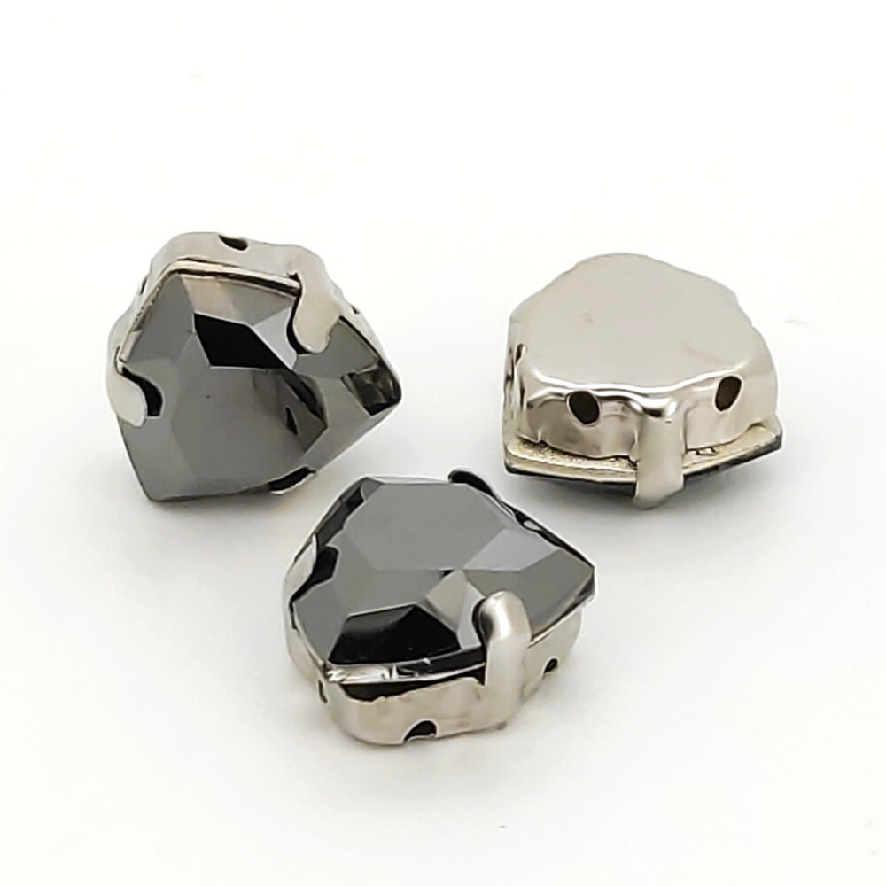 Стразы стекло К9 в цапах Треугольник 12 мм 3 шт. Гематитовый