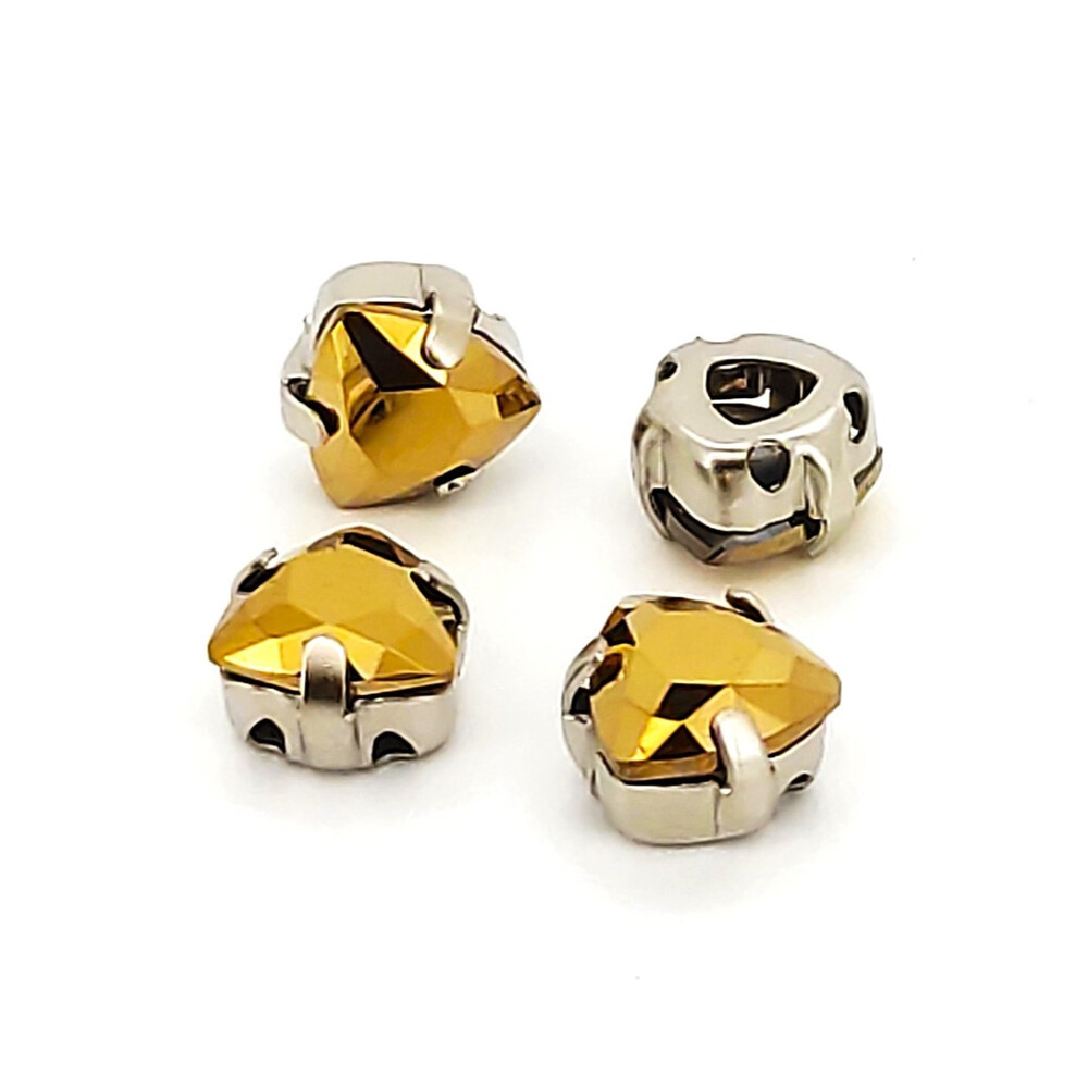 Стразы стекло К9 в цапах Треугольник 7 мм 4 шт. Золотистый