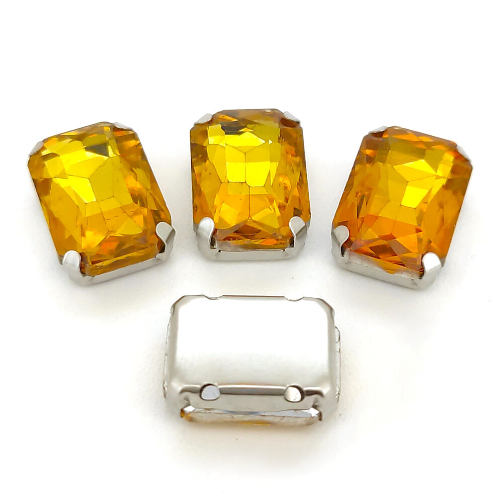 Стразы в цапах пришивные Прямоугольник 10х14 мм 10 шт. Желтый