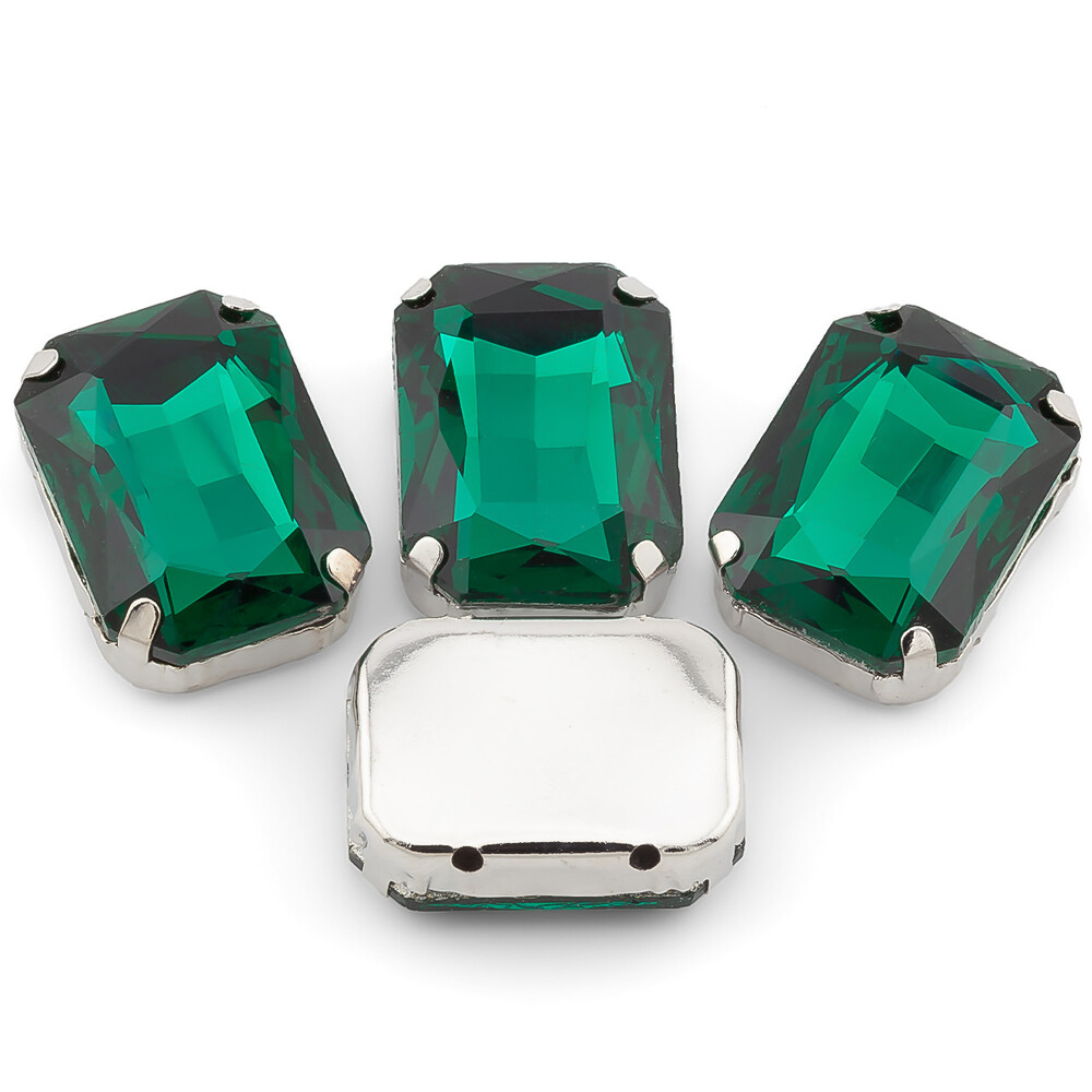 Стразы в цапах пришивные Прямоугольник 10х14 мм 10 шт. Зеленый