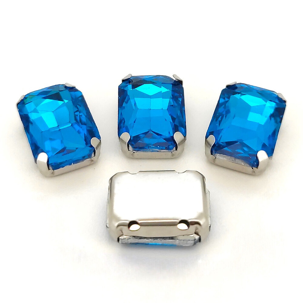 Стразы в цапах пришивные Прямоугольник 10х14 мм Голубой 10 шт.