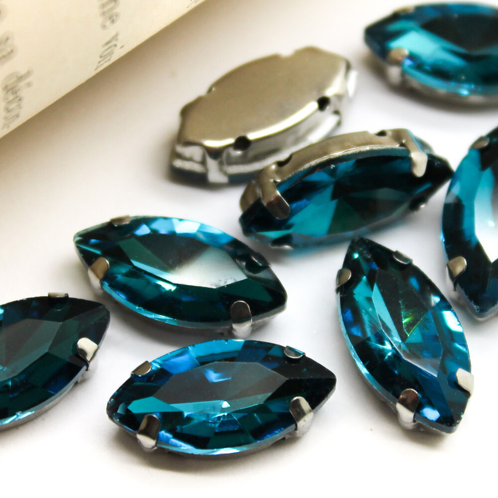 Стразы в цапах Лодочка пришивные 4х8 мм Море 10 шт.