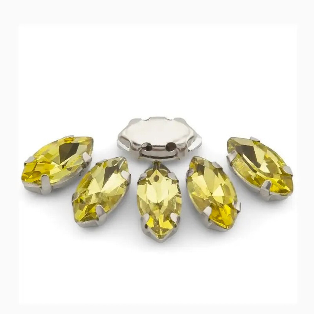 Стразы в цапах пришивные Лодочка 7х15 мм Желтый 10 шт.