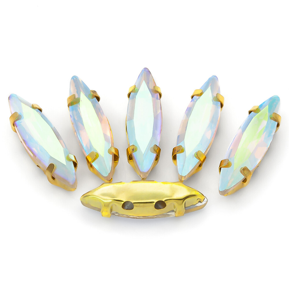 Стразы в золотых цапах Лодочка 4х15 мм АВ 10 шт.