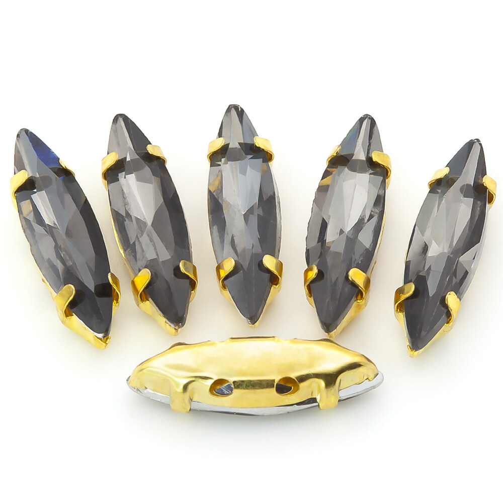 Стразы в золотых цапах Лодочка 4х15 мм Серый 10 шт.