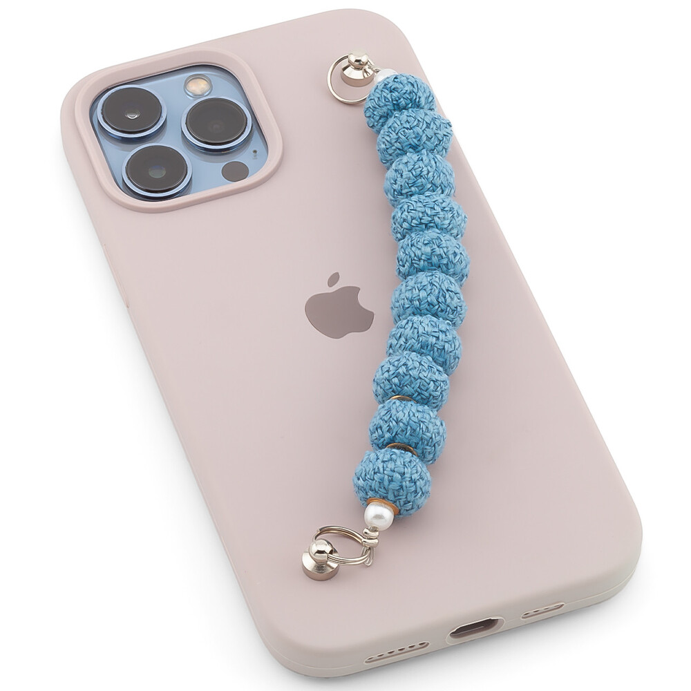 Держатель телефона декор чехла из вязаных бусин с винтами 18х1,5 см 1 шт. Голубой