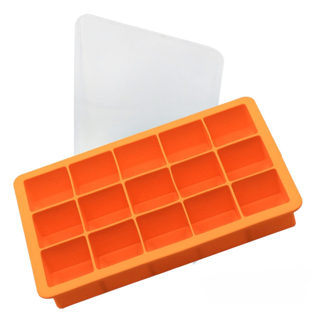 Форма с крышкой Квадратная 15 яч. силиконовая 18,5х11,5 см Ø 3,3х3,5 см 1 шт. Оранжевый