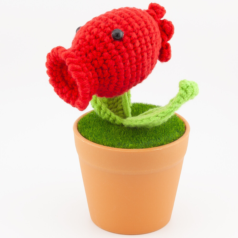 Горохострел Plants в горшке, вязаный, на 1 цветок, размер 16х8см, цвет Красный 1шт.