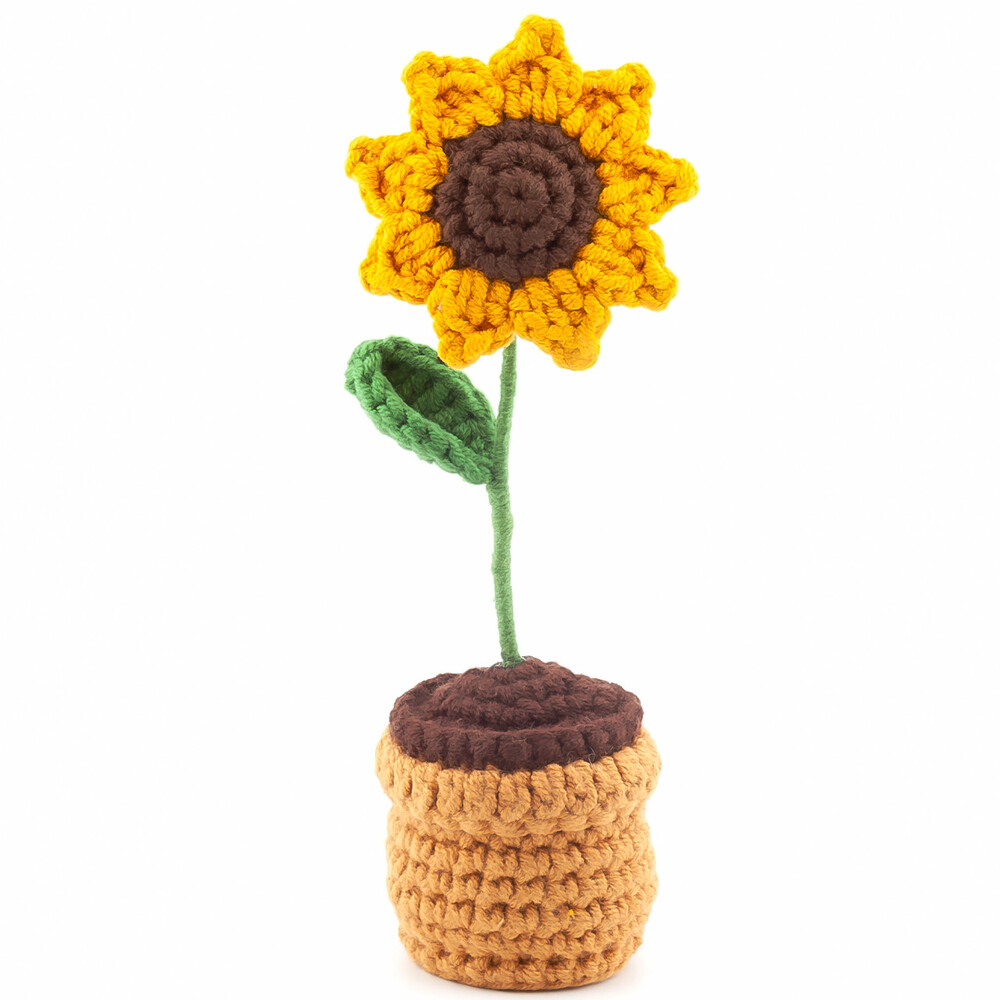 Подсолнух в горшке, игольница/декор, вязаный, на 1 цветок, размер 16х5,5см, цвет Оранжевый, 1шт.