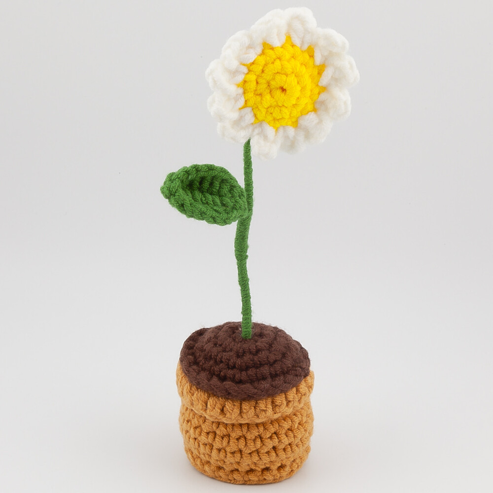 Ромашка в горшке, игольница/декор, вязаная, на 1 цветок, размер 16х5см, цвет Белый 1шт.