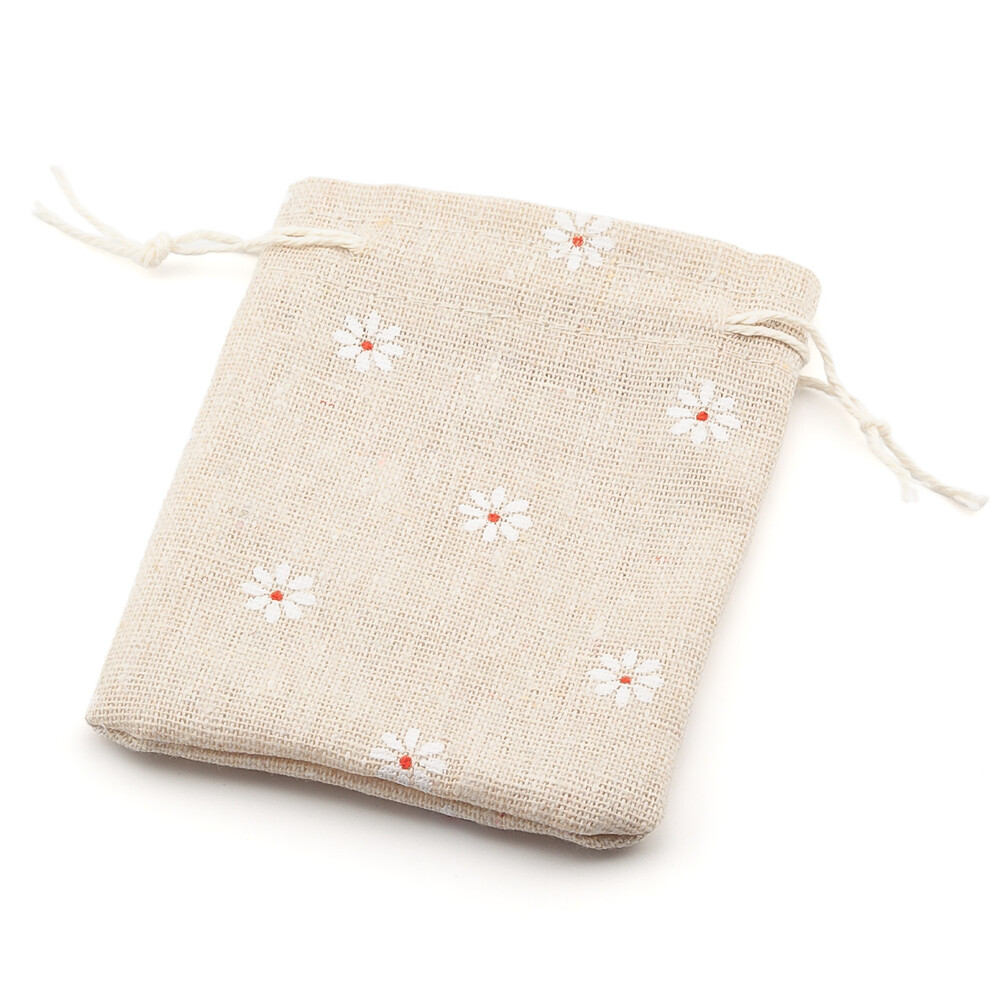 Подарочный мешочек тканевый 8х10 см (+-5 мм) 1 шт. Бежевый принт Цветы ромашек