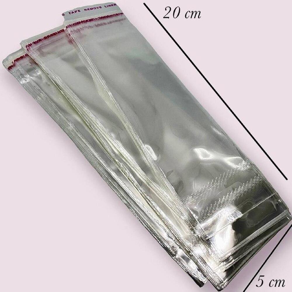 Пакет на липкой ленте для изделий, Прозрачный, размер 5х20см, в уп. +-100 шт.